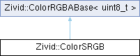 | Public Member Functions inherited from Zivid::ColorRGBABase< uint8_t > | |